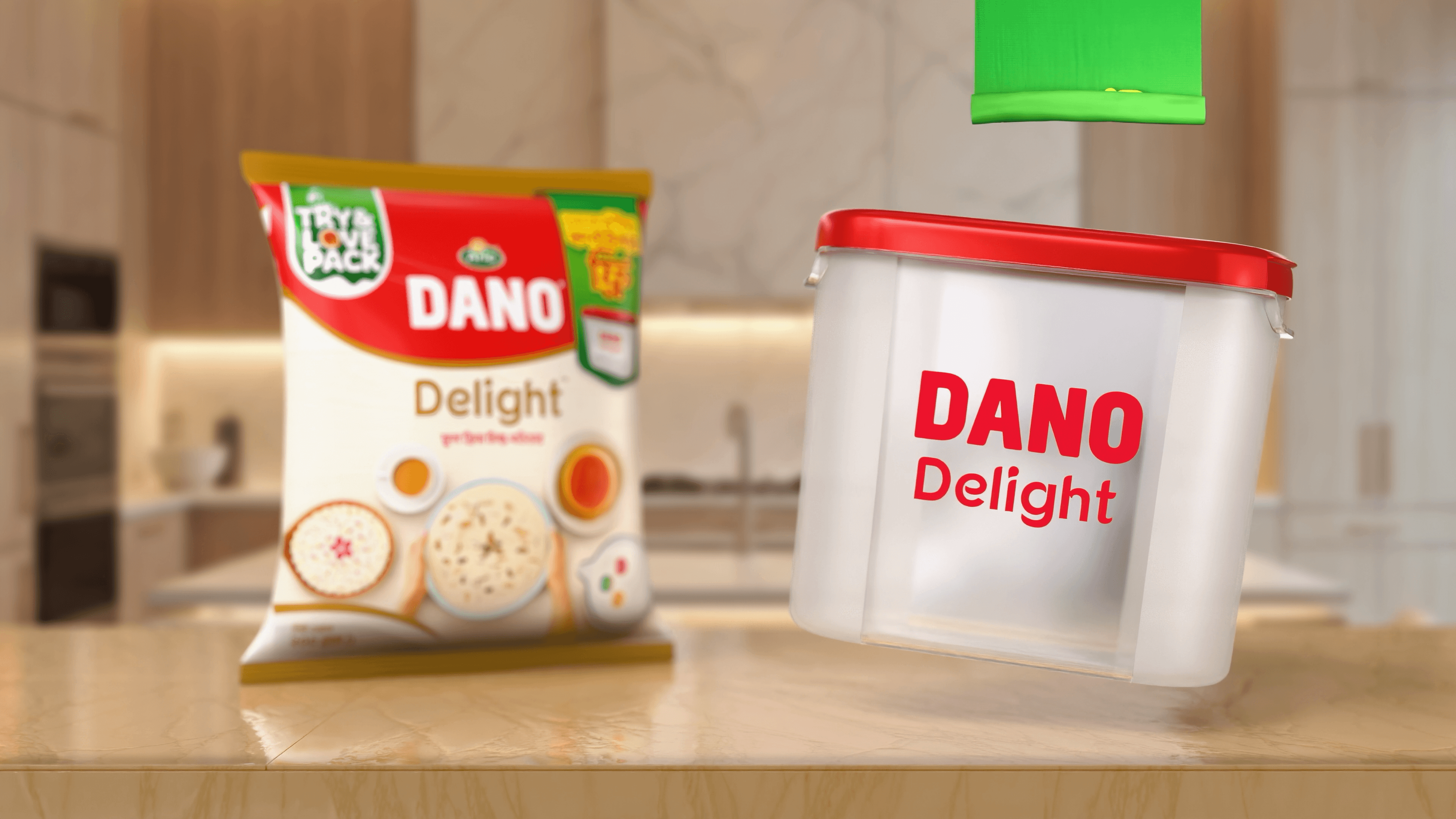 Our goal was to make the Dano Delight pack the hero of the frame. Whether it was standing elegantly on a marble countertop or interacting with the promotional container, every shot was crafted to highlight the product’s quality and the excitement of the "Free Container" offer.