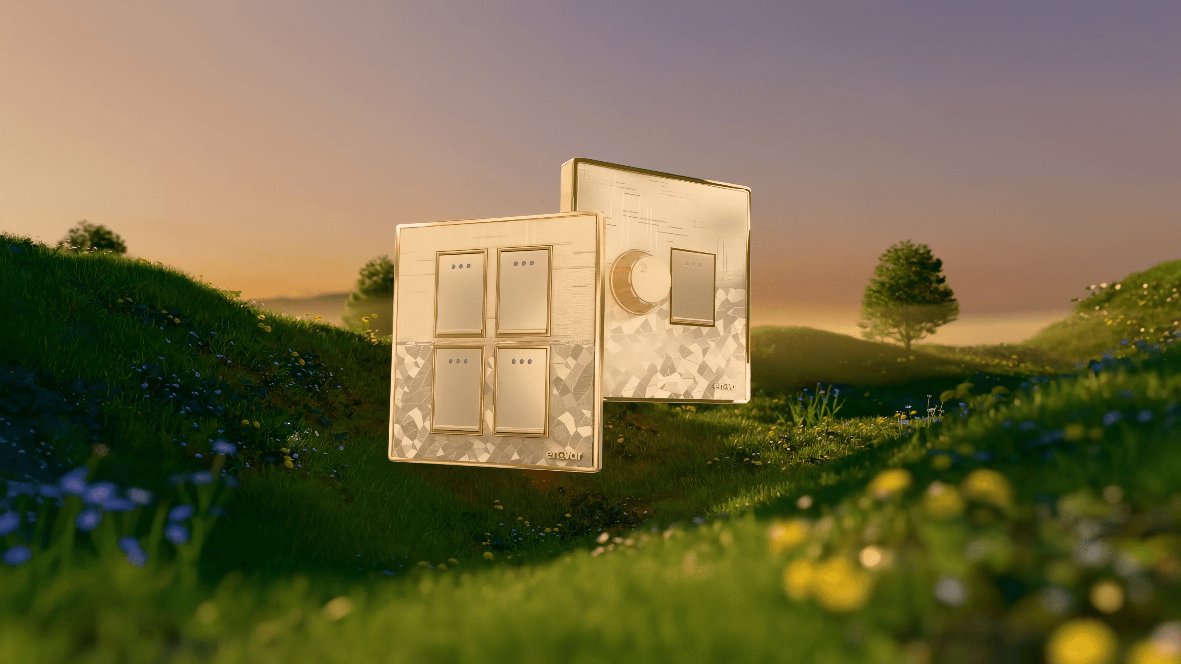 The Enovar Saffron collection isn’t just about switches; it’s about the intersection of technology and premium design. The client brief required a visual narrative that felt both grounded in nature and impossibly refined. We chose to place these golden modular units within a lush, sunset-lit meadow to emphasize their "natural" elegance and superior finish.