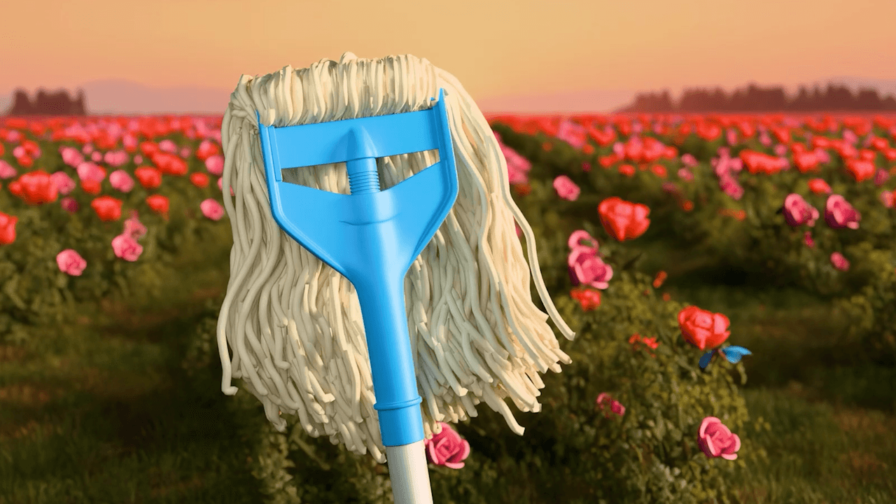 One of the standout features of this project was the mop character’s "hair." To achieve realistic movement and texture for the mop strings, we utilized Houdini. The hair simulation allowed the strings to react naturally to the character's movements and the simulated breeze in the rose field, providing a level of tactile realism that is a hallmark of our work.