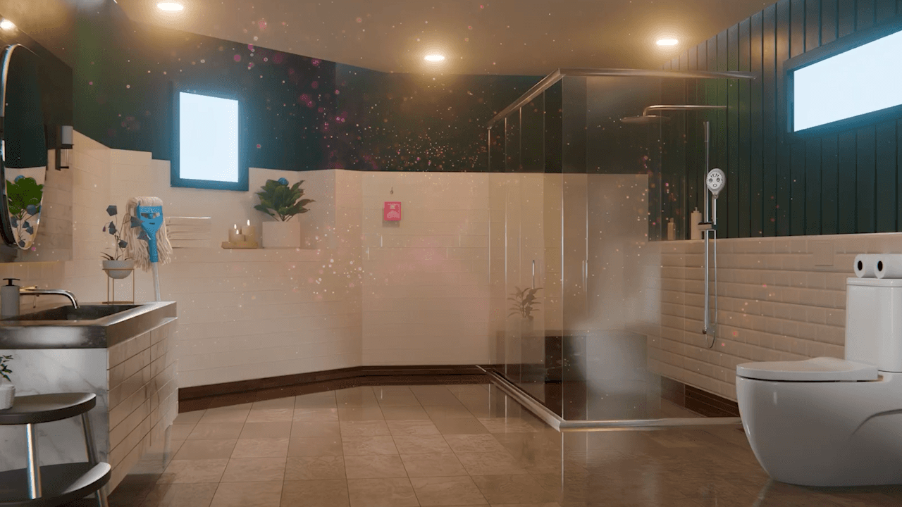 Our creative approach centered on anthropomorphism. We designed a "Mop" and a "Toilet" character, giving them expressive eyes and subtle facial movements. The narrative arc follows these characters as they find themselves in a sprawling, sun-drenched rose field—a visual metaphor for the Godrej Aer fragrance—before transitioning back to a beautifully rendered, modern bathroom.