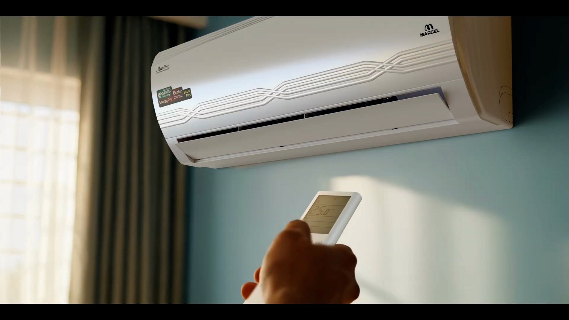 AI is great for backgrounds, but it often struggles with specific brand details. We modeled the Marcel AC, refrigerator, and washing machine from scratch in Blender. This gave us total control over reflections, lighting, and small movements—like an AC vent opening—that AI simply can’t get right yet.