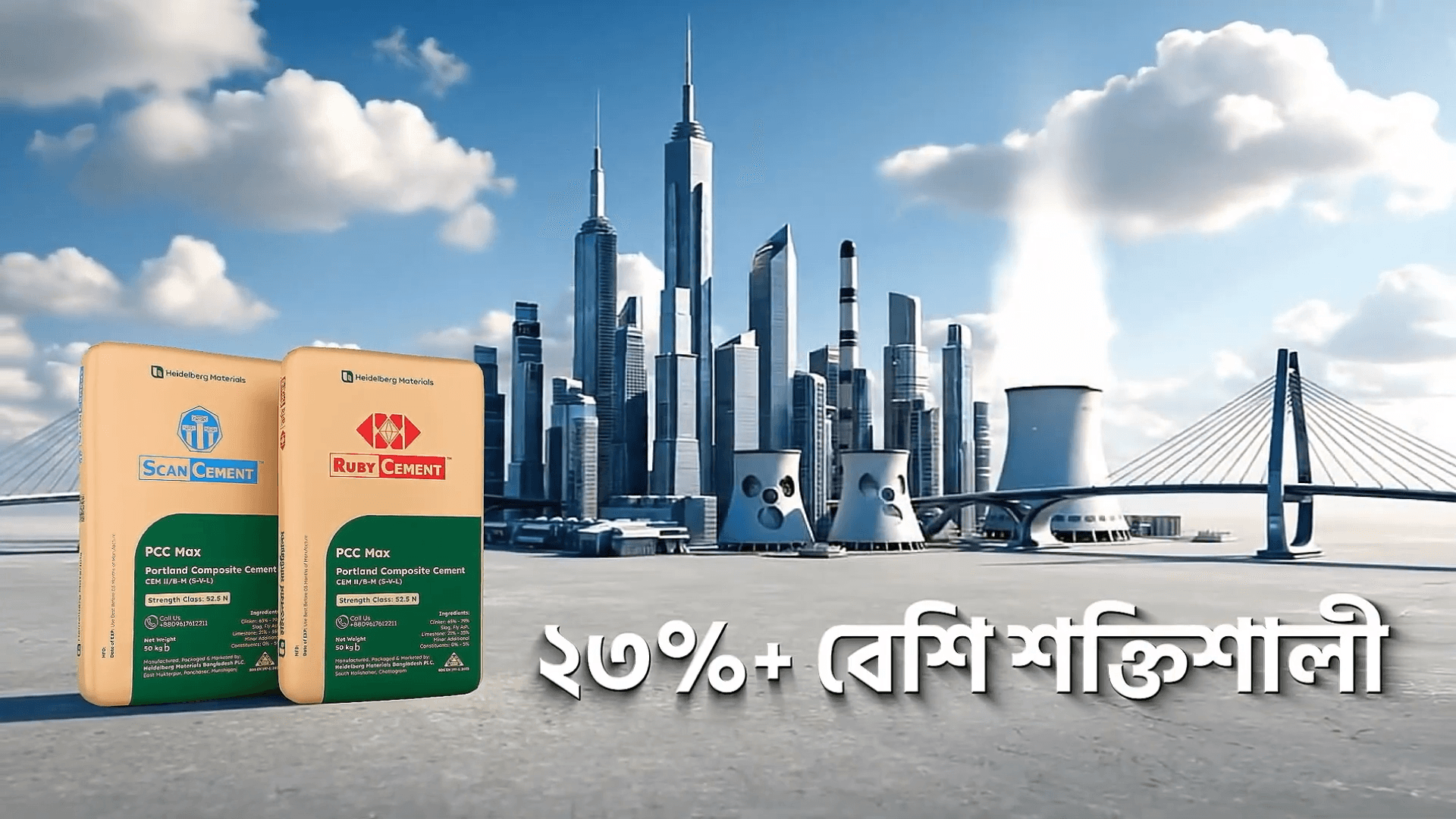 When Heidelberg Materials came to us for the Ruby and Scan Cement PCC Max project, the brief was straightforward but heavy on deliverables. They needed to communicate specific technical benefits: "23%+ Stronger," moisture resistance, and massive scale. They wanted the visuals to scream "Shokti" (Power).