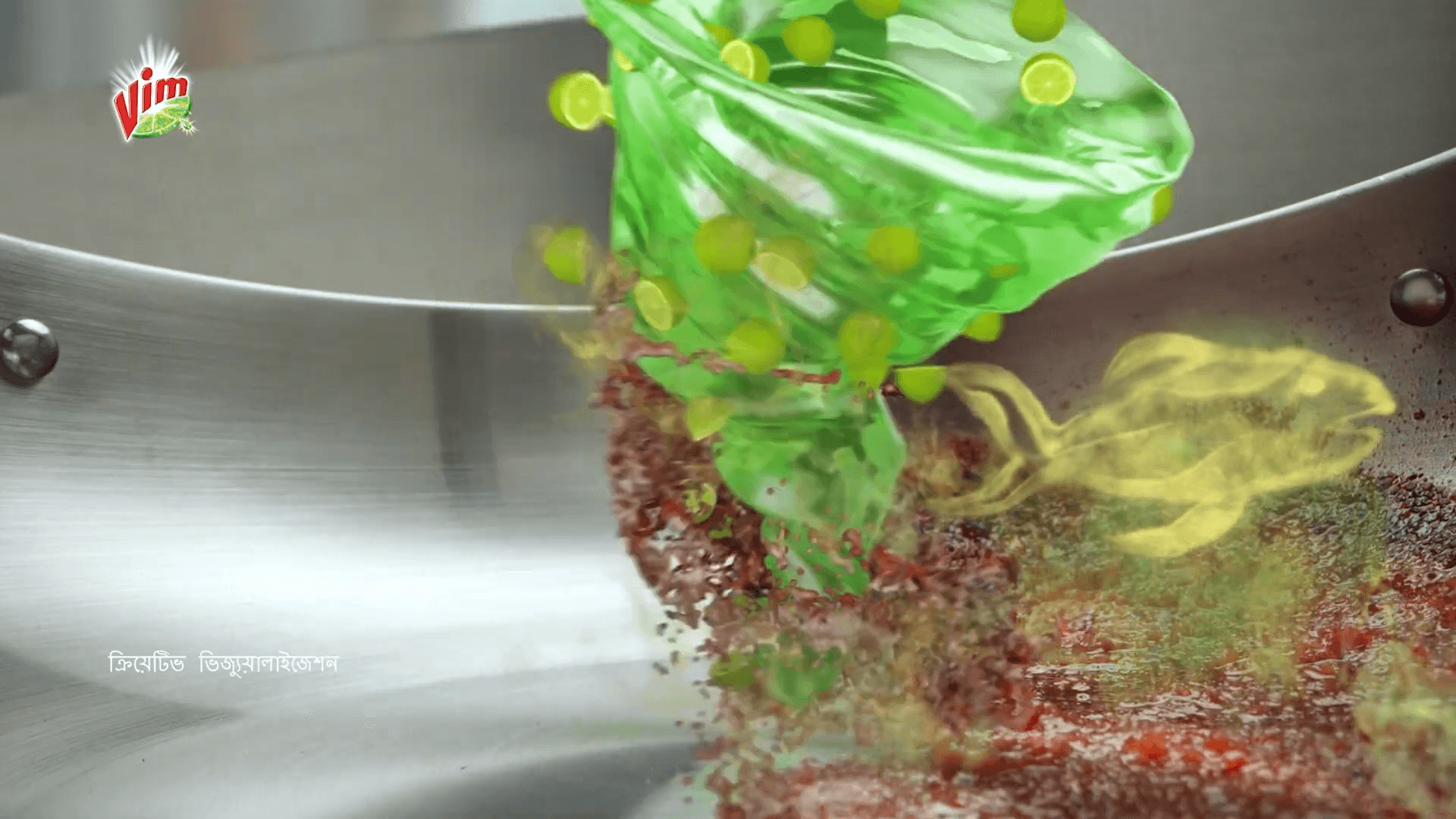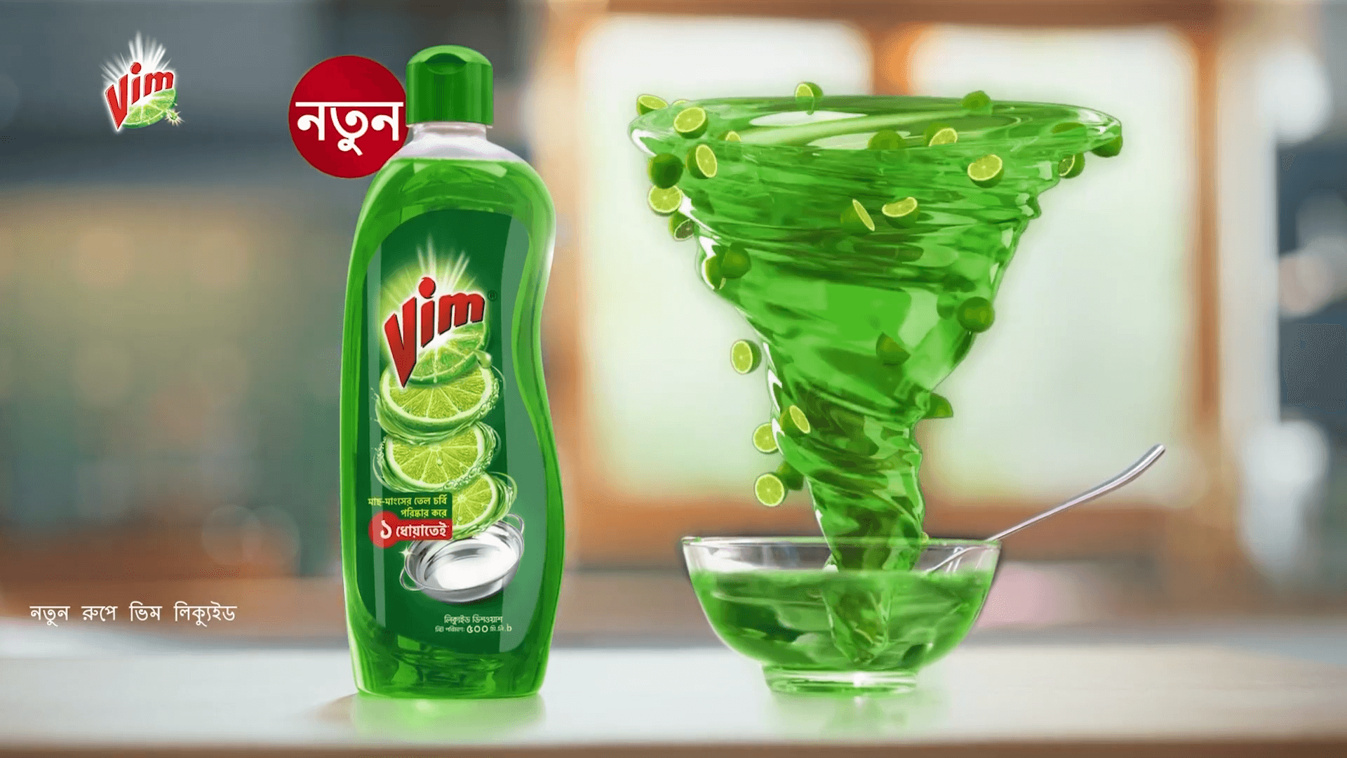 For the new Vim Liquid commercial, FireDrum Studios was tasked with visualizing the product’s intense cleaning power through high-end CGI. Our team executed a full 3D bottle replacement for perfect lighting control and developed a complex "liquid tornado" simulation using mesh deformation to illustrate the instant removal of grease. As a premier post-production studio in Bangladesh, we seamlessly blended these 3D elements with live-action footage for a flawless finish.